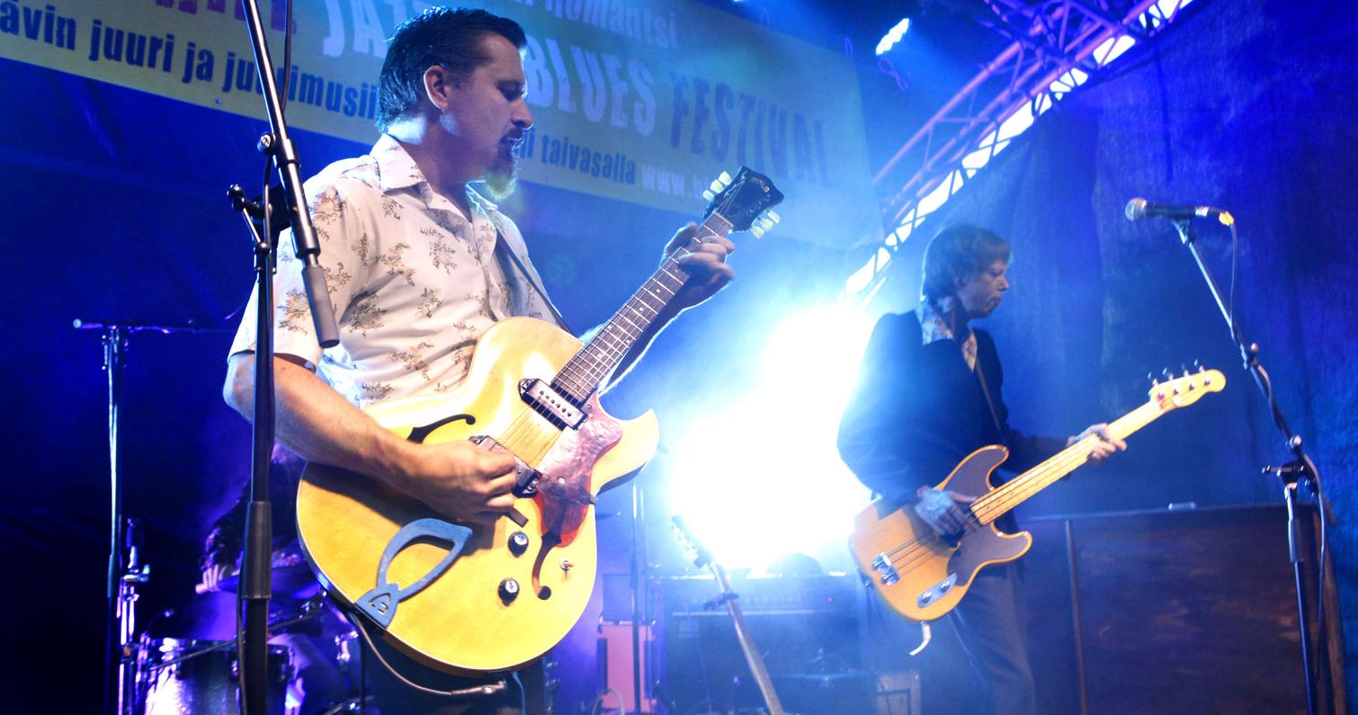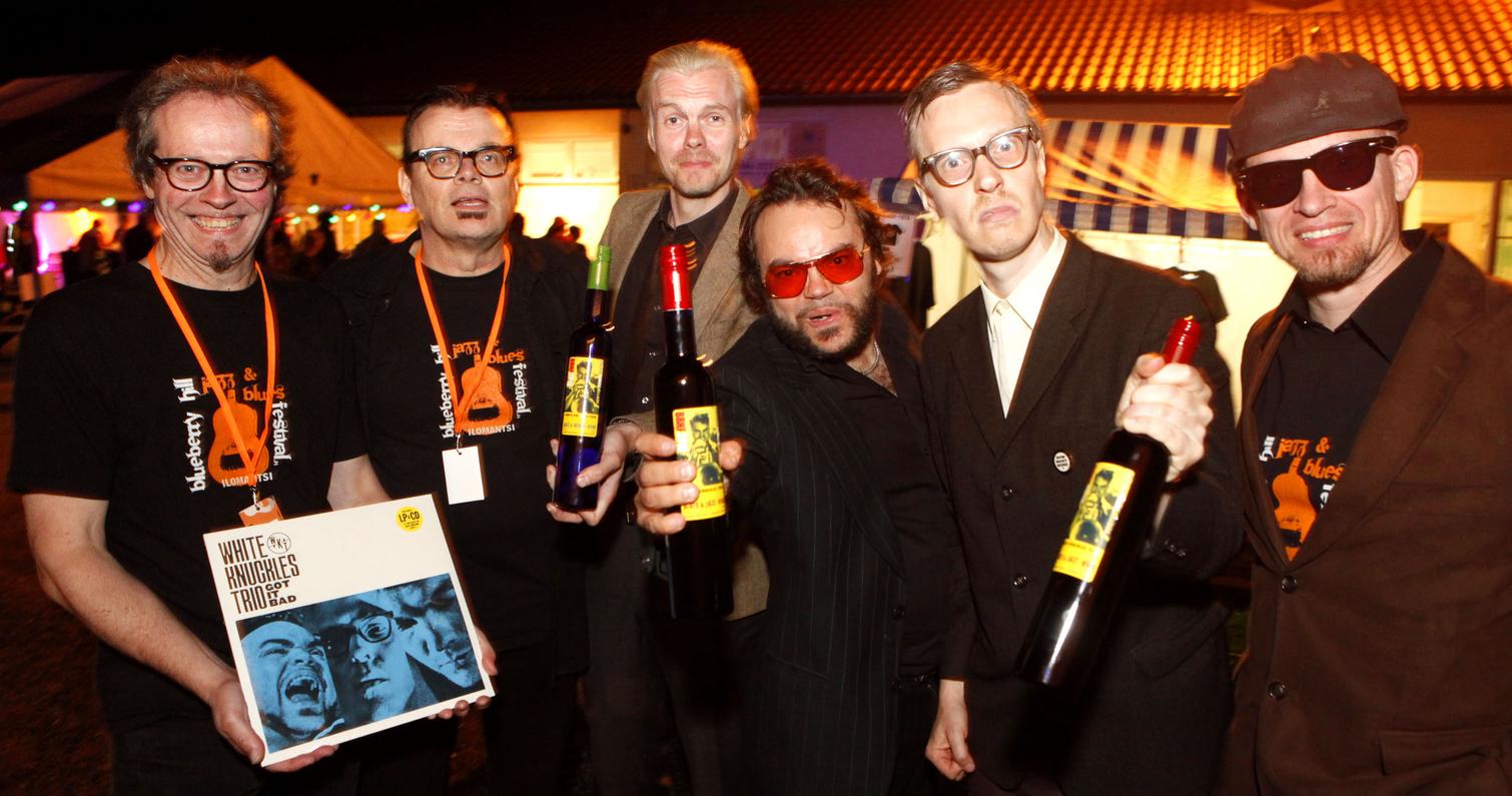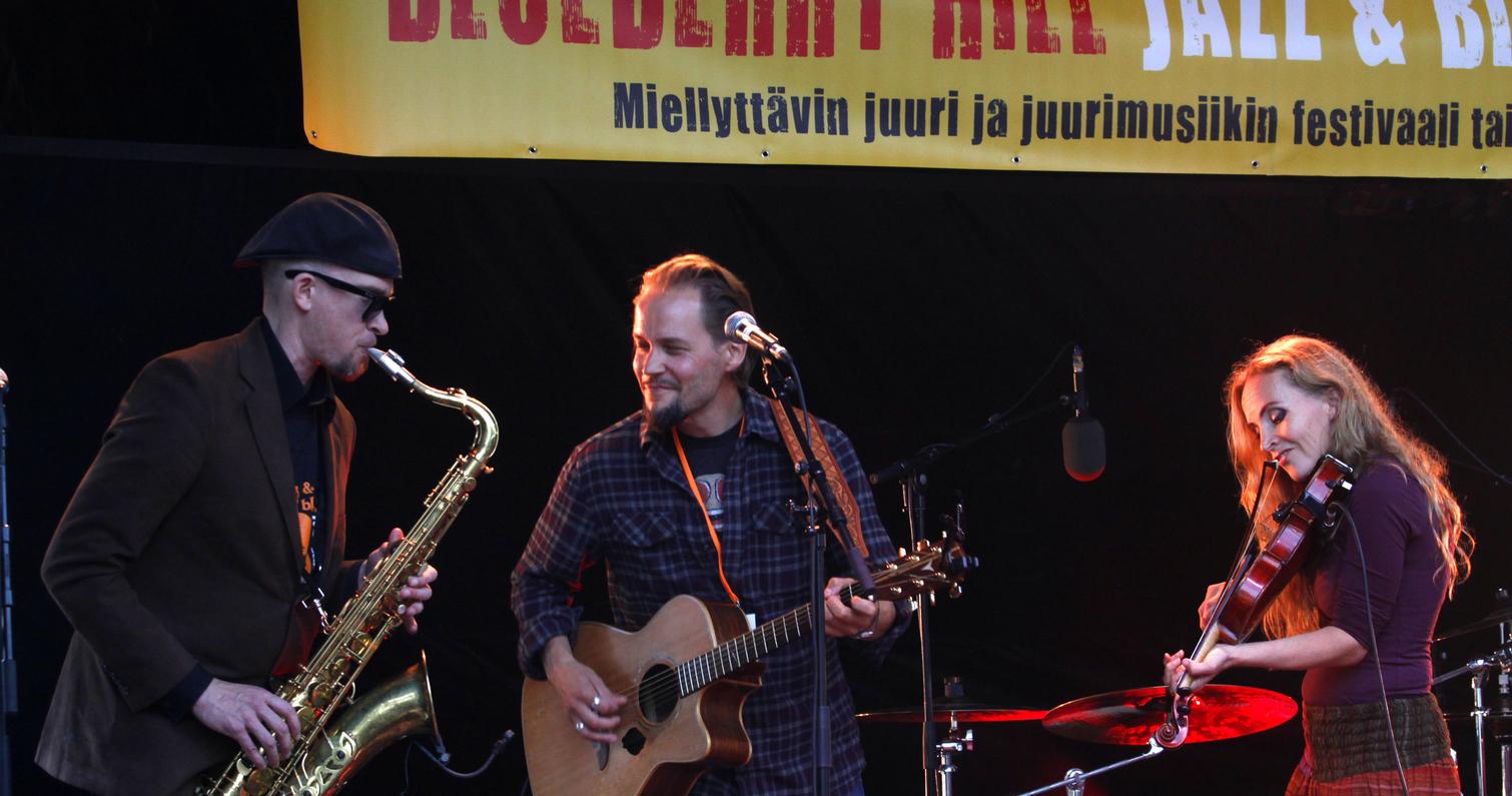 Lauantaisen bluesillan avasi sympaattisen soulahtava, sekä rock ja blues covereihin notkeasti taipuva porvoolainen Carl Olin Band. Erinomainen aloitus myös lauantaille. Erittäin miellyttävän sympaattinen festivaalivieras oli myös Ninni Poijärven ja Mika Kuokkasen duo, joka esitti omaa folkin, countryn ja bluesin sävyttämää juurimusiikkiaan. Lavalla pyörähteli myös heidän Helmi-tytär. Kahden ensimmäisen esiintyjän rinnalla fonisooloja kävi vetämässä myös yhdistyksemme oma edustaja, saksofonisti Ari Lemmetyinen. On kätevää, että pystymme tarjoamaan esiintyjille myös ammattimaista musiikillista tukea. Loppuilta mentiin sitten jytäkämmissä merkeissä. Ensin paidat hikeen veti Tomi Leino Trio edellisen sekä keväällä ilmestyneen Hip Shootin’ –levyn materiaalilla. Trio on yksi ahkerimmin Suomessa ja Euroopassa keikkailevista bluesbändeistämme. Kitaristi-harpisti-laulaja Leinon lisäksi triossa soitti bassoa ja kitaraa Jaska Prepula ja rumpuja Mikko Peltola. Illan pääesiintyjänä oli tammikuussa Finnish Blues Awardseissa edellisen vuoden tulokkaana palkittu helsinkiläinen White Knuckles Trio. Loistava keikka taisi olla loistavan ja lyhyen uran tehneen viimeisimpiä… Triossa soittivat Knucklebone Oskar, kitara, Mr Hillside, piano ja Yukka White, rummut ja laulu. Loppuillan kaoottisten sisätiloissa pidettävien jamien sijaan järjestimme tänä vuonna yömusiikiksi Elli ja Joonas Nuutisen laulua ja soittoa. Heidän jälkeensä syntyi kuitenkin vielä spontaanit jamit Leinon trion ja WKT:n muusikoiden kesken. Seinä- ja ympäristötaidetta tarjosi tänäkin vuonna Enon taidekartta yhdistys. Tekniikasta vastasi joensuulainen Vuorenvoima, Tatu Vuori ja Kuisma Potkonen.