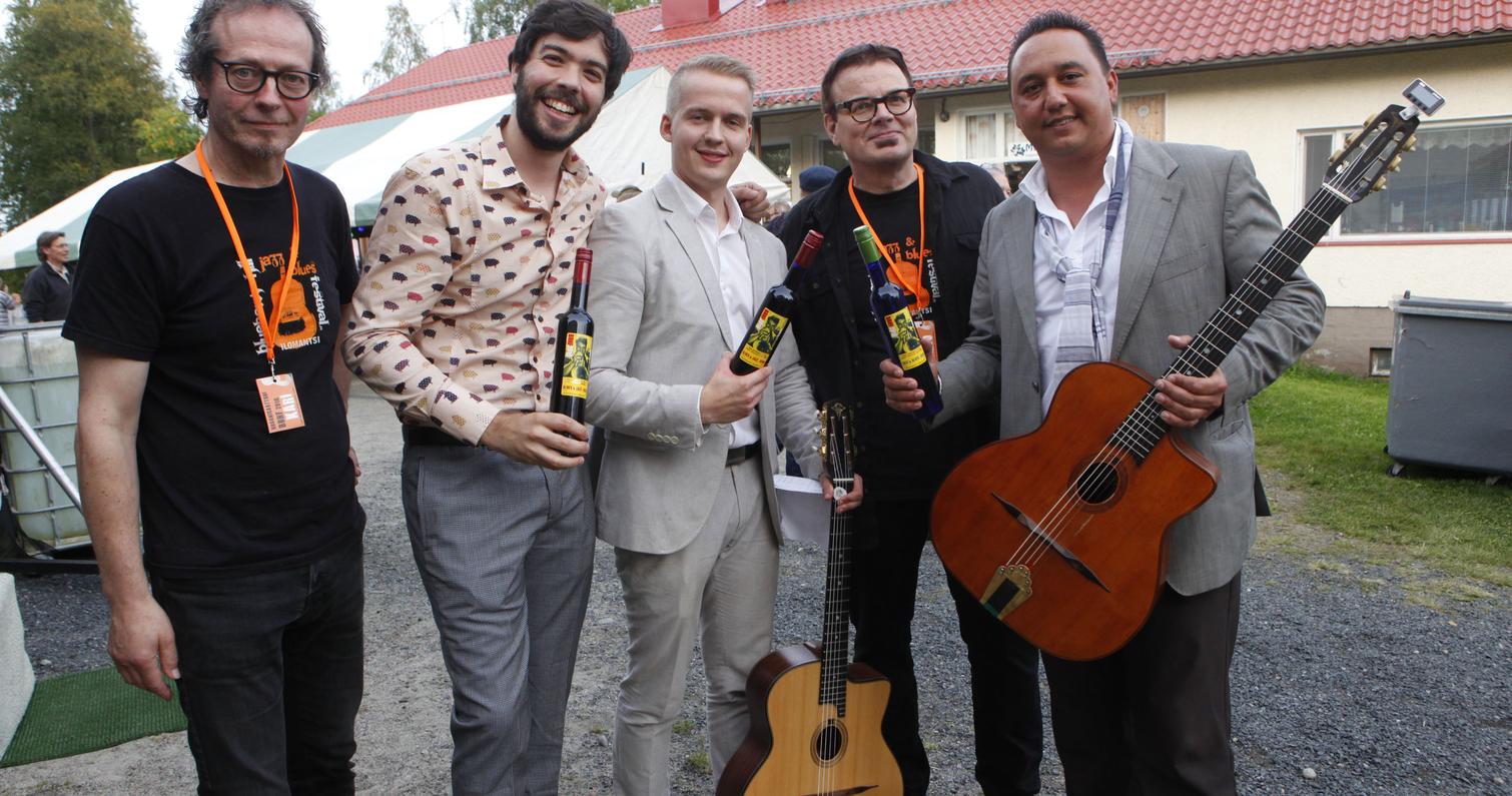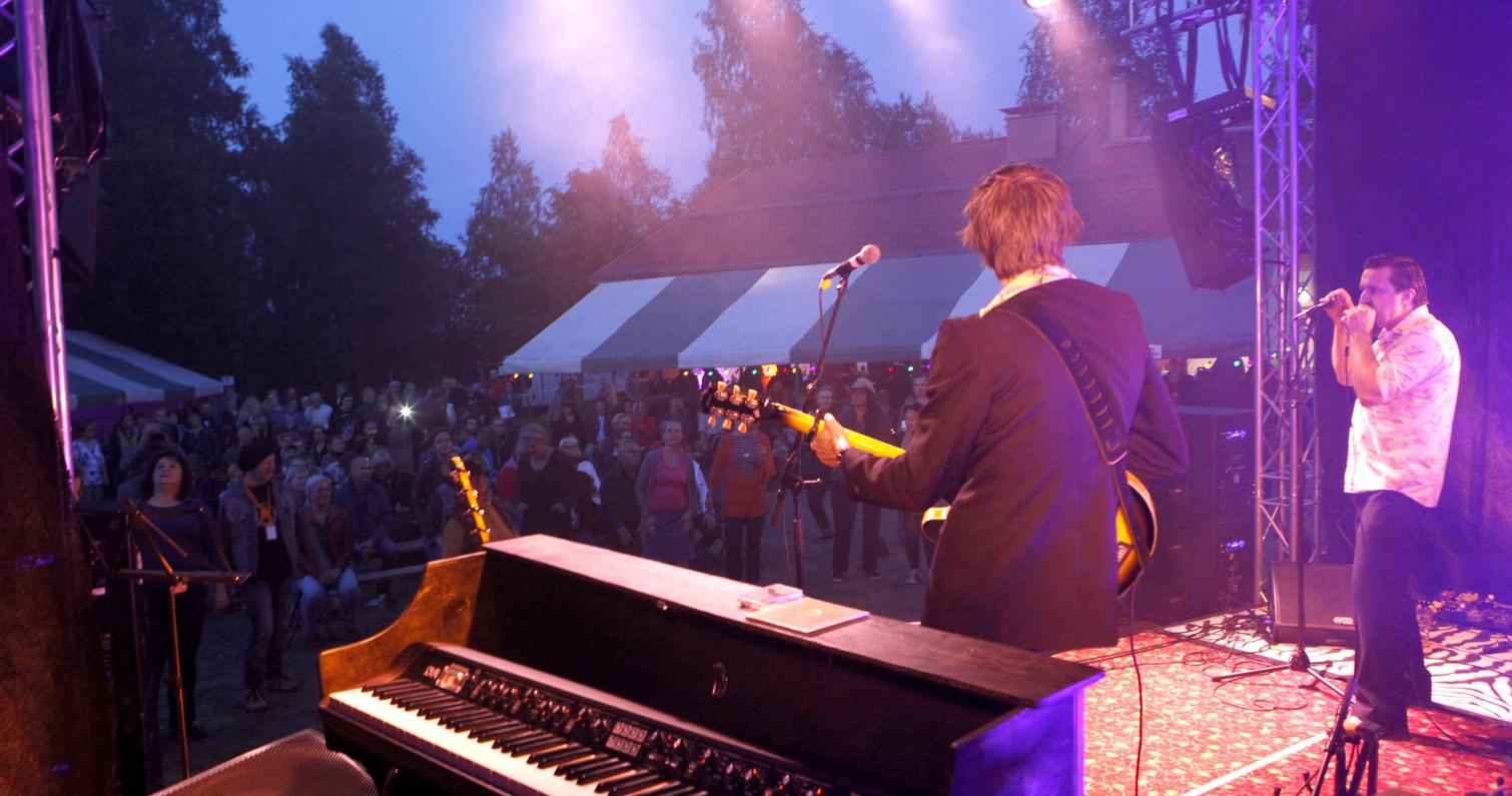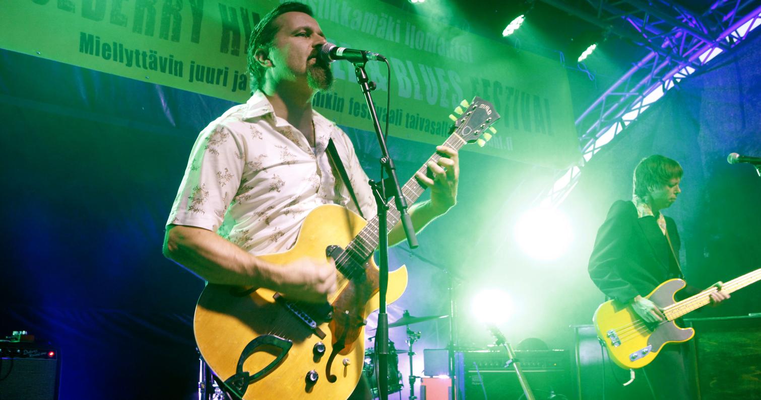 Lauantaisen bluesillan avasi sympaattisen soulahtava, sekä rock ja blues covereihin notkeasti taipuva porvoolainen Carl Olin Band. Erinomainen aloitus myös lauantaille. Erittäin miellyttävän sympaattinen festivaalivieras oli myös Ninni Poijärven ja Mika Kuokkasen duo, joka esitti omaa folkin, countryn ja bluesin sävyttämää juurimusiikkiaan. Lavalla pyörähteli myös heidän Helmi-tytär. Kahden ensimmäisen esiintyjän rinnalla fonisooloja kävi vetämässä myös yhdistyksemme oma edustaja, saksofonisti Ari Lemmetyinen. On kätevää, että pystymme tarjoamaan esiintyjille myös ammattimaista musiikillista tukea. Loppuilta mentiin sitten jytäkämmissä merkeissä. Ensin paidat hikeen veti Tomi Leino Trio edellisen sekä keväällä ilmestyneen Hip Shootin’ –levyn materiaalilla. Trio on yksi ahkerimmin Suomessa ja Euroopassa keikkailevista bluesbändeistämme. Kitaristi-harpisti-laulaja Leinon lisäksi triossa soitti bassoa ja kitaraa Jaska Prepula ja rumpuja Mikko Peltola. Illan pääesiintyjänä oli tammikuussa Finnish Blues Awardseissa edellisen vuoden tulokkaana palkittu helsinkiläinen White Knuckles Trio. Loistava keikka taisi olla loistavan ja lyhyen uran tehneen viimeisimpiä… Triossa soittivat Knucklebone Oskar, kitara, Mr Hillside, piano ja Yukka White, rummut ja laulu. Loppuillan kaoottisten sisätiloissa pidettävien jamien sijaan järjestimme tänä vuonna yömusiikiksi Elli ja Joonas Nuutisen laulua ja soittoa. Heidän jälkeensä syntyi kuitenkin vielä spontaanit jamit Leinon trion ja WKT:n muusikoiden kesken. Seinä- ja ympäristötaidetta tarjosi tänäkin vuonna Enon taidekartta yhdistys. Tekniikasta vastasi joensuulainen Vuorenvoima, Tatu Vuori ja Kuisma Potkonen.